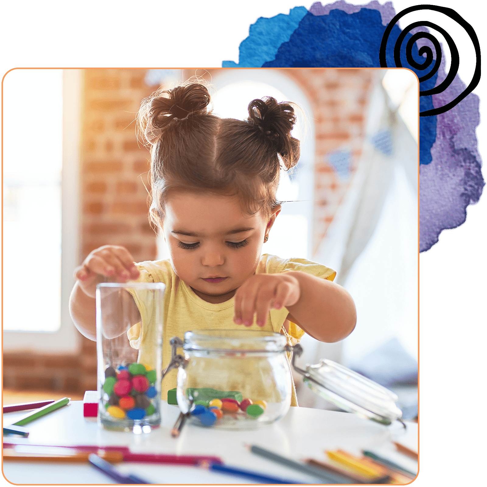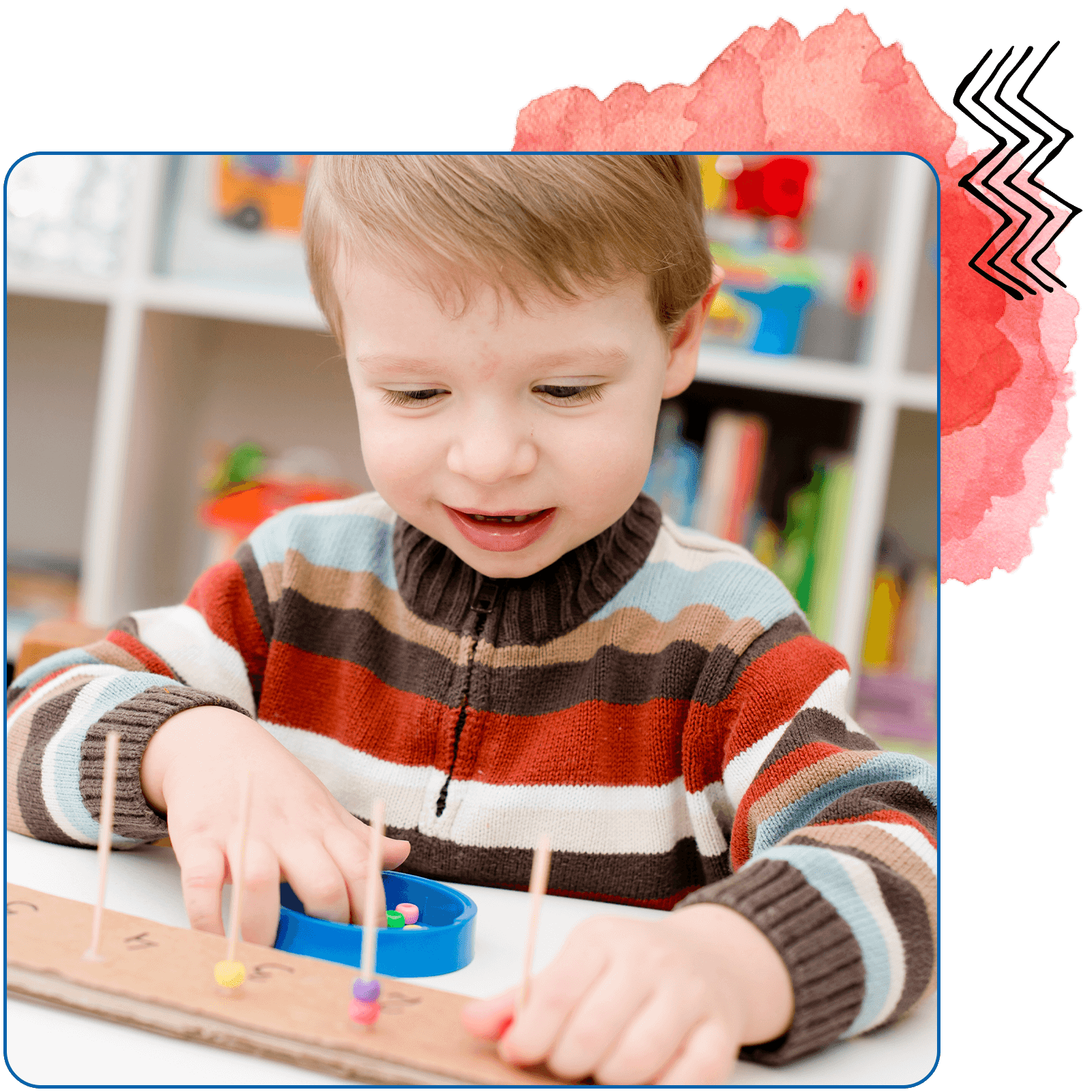 Work on grip strength, fine motor, color sorting, and counting with this fun activity. We used craft tubes and set them on the number circles.