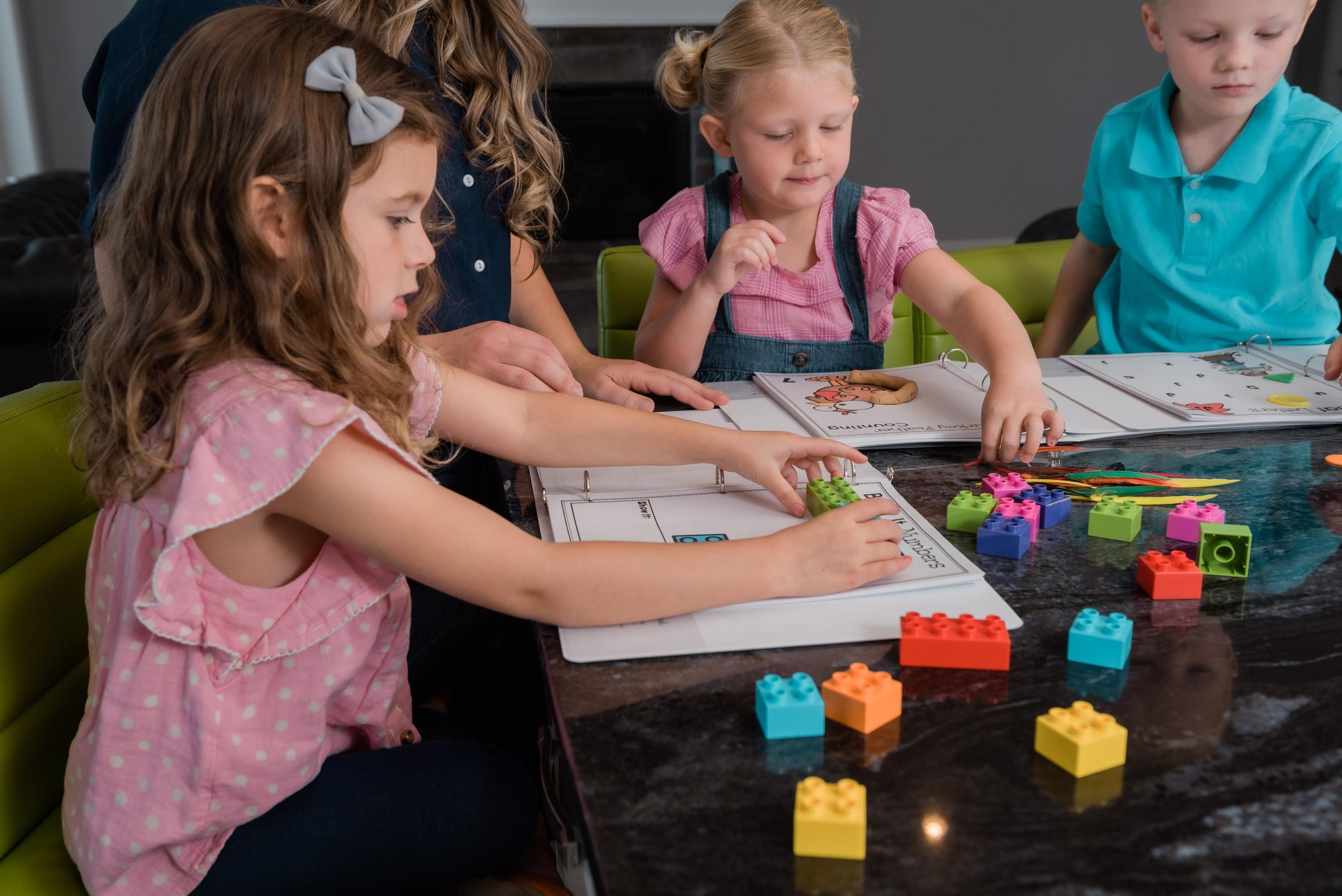 We’re working on counting while building block towers to match the number on each page.